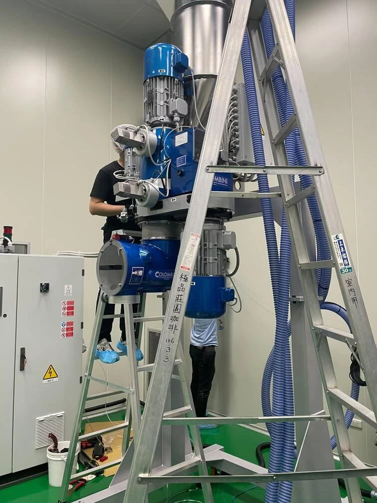 The Flying Tiger conveying system serves the role of conveying coffee beans for their machine.