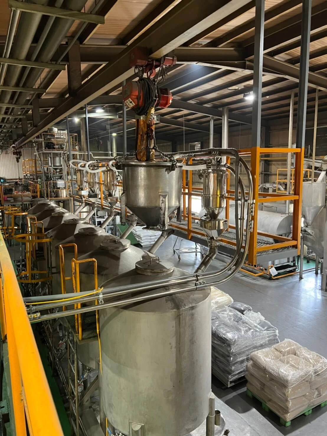 原本是單一輸送點,這次中央供料(氣送系統)擴大成多個工作站之間串連。